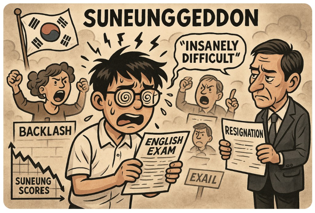 South Koreaโs famously soul-crushing college entrance exam โ the Suneung โ just hit a new level of absurdity, after the 2025/26 English section was so baffling it sent students spiraling, parents screaming, and the testโs chief straight out the resignation door. Thatโs right: the exam was such a philosophical word salad that even the man in charge said, โYeah, my bad,โ and quit.