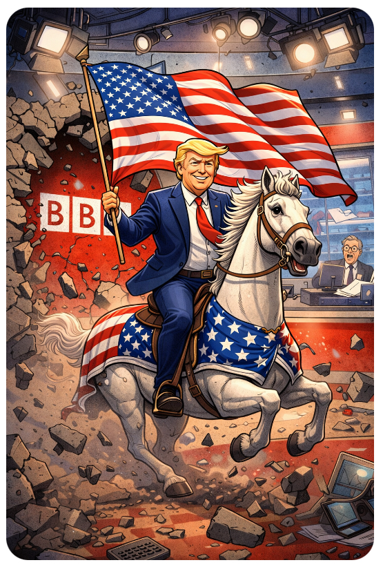 Now it’s BBC execs in the spotlight, the ones who thought they could gaslight the global public with a few scripted “editorial reviews” while framing the President like he’s a dodgy quiz show contestant. Spoiler alert: they backed the wrong horse, and that horse just galloped into court wearing a stars-and-stripes saddle. 🐎🇺🇸