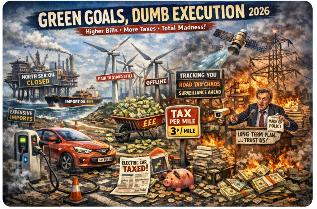 First, we killed North Sea oil—before building anything to replace it. Now we import the same oil, at higher cost, and pretend that’s eco-friendly.