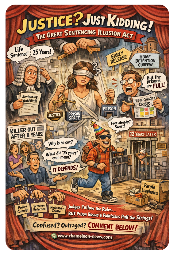 Welcome to the criminal justice system, where sentences are handed down with solemn authorityβthen quietly rewritten by a bureaucrat with a spreadsheet and a panic attack about prison overcrowding.