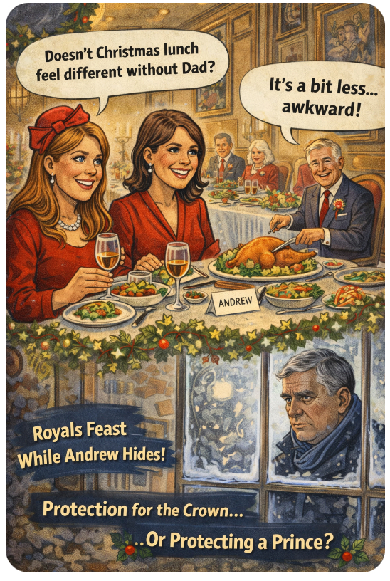 Is Andrew’s absence a sign the Firm is finally taking accountability seriously—or just another royal reshuffle to protect the brand over the truth? Should he be iced out of the festivities or front and centre answering questions? Tell us what you think in the blog comments. 💬❄️