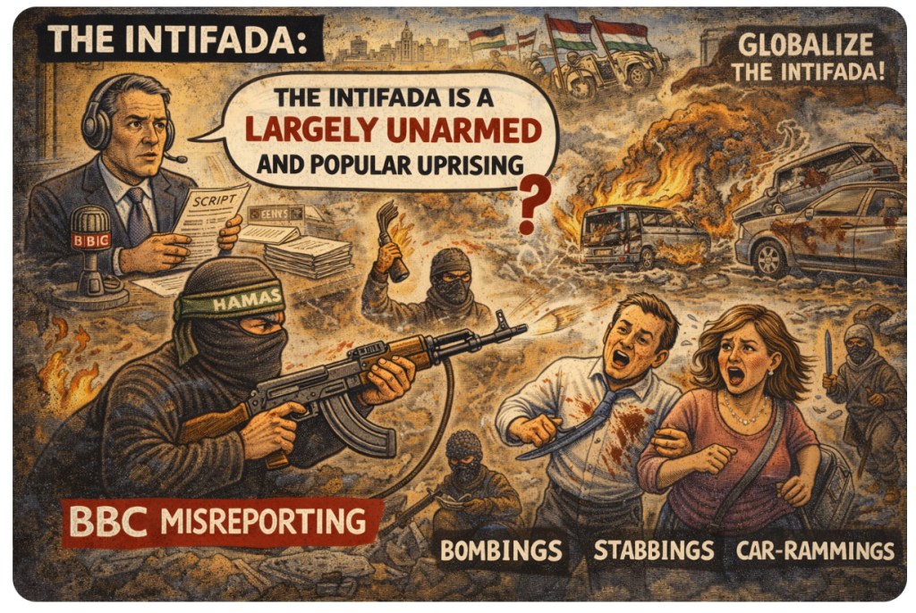 While Israelis were being hunted in the streets last Sunday—real-time terror streamed across global screens—the BBC decided it was time for a vocabulary cleanse. Their latest masterpiece? Referring to the intifadas as “largely unarmed and popular uprisings.”