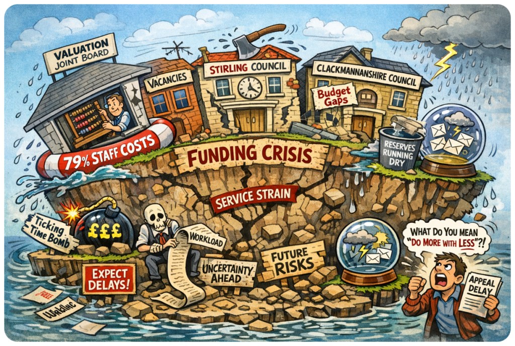 🧾🔍Falkirk, Stirling and Clackmannanshire Councils approved a budget in March 2023 that looked duller than a damp ballot paper — but beneath the sterile spreadsheets lay a masterclass in polite omission, bureaucratic backflips, and staff-stretching worthy of a Cirque du Soleil audition.