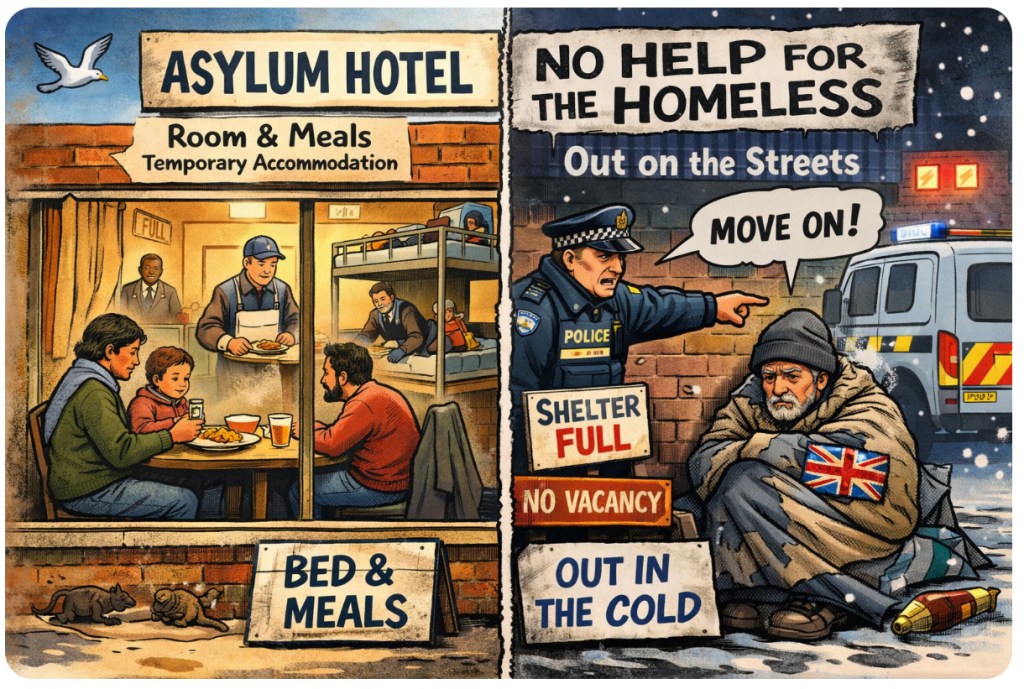 ❄️🚪In today’s Britain, there are two kinds of desperate: the kind that gets processed, and the kind that gets forgotten. Arrive soaking wet on a beach, and you might get a bed. Collapse under a bridge with frostbite, and you’ll get a move-on order, a fine, or a shrug. Welcome to a country where visibility, not vulnerability, decides who gets help.