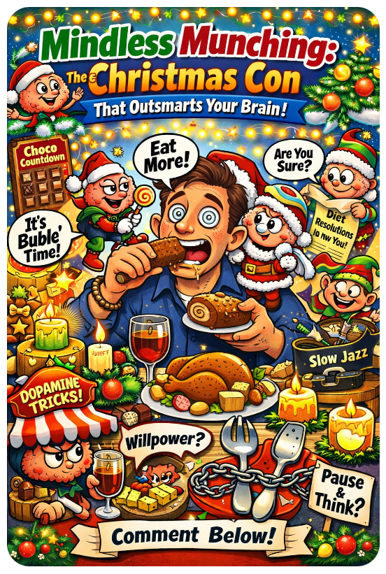 Every December, we blame mince pies, mulled wine, and Aunt Carolโs cheese board for our button-popping regret. But guess what? Itโs not the food. Itโs the sneaky sabotage happening inside your skull. Yepโyour brainโs been conned, courted, and chemically tricked into that fourth helping of stuffing.