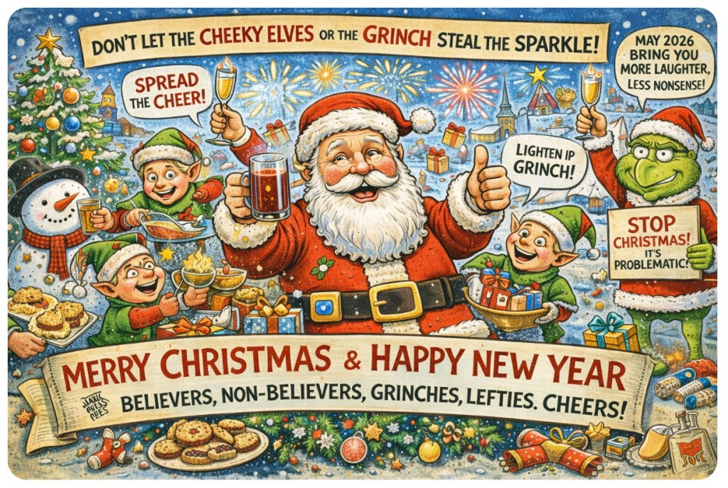 Believers, non-believers, grinches, lefties, righties, and everyone just here for the roast potatoes. May 2026 bring you more laughter, less nonsense, and plenty of reasons to smile.