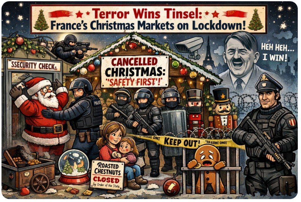 Amid threats allegedly tied to migrants, the government’s response isn’t to address root causes—it’s to throw a Kevlar vest on the Christmas spirit. Markets that once smelled of cinnamon, mulled wine, and overpriced snow globes now reek of fear and over-policing.