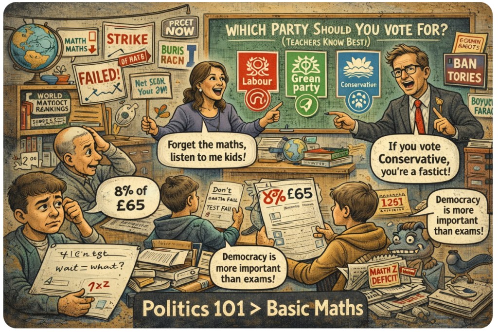 Apparently, maths is optional โ but political โguidanceโ is extra credit. Across UK classrooms, students are flunking basic numeracy, yet some teachers have decided their real job is to steer teens toward the โcorrectโ political party. You know, because what Britain needs most right now is a generation that canโt calculate interest rates but knows which MP hates oat milk.