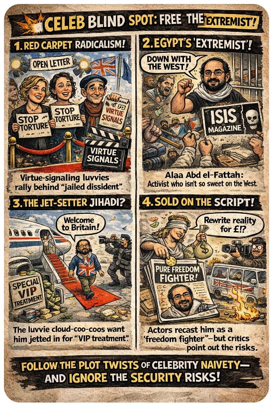 When Hollywood liberalism meets Middle Eastern geopolitics, expect more drama than a West End opening night. Enter stage left: a glittering cast of British luvvies—Emma Thompson, Olivia Colman, Mark Rylance—who’ve thrown their righteous weight behind Alaa Abd el-Fattah, an Egyptian activist with a rap sheet longer than a Netflix docuseries. Human rights hero or ideological grenade? Depends who’s directing the scene.