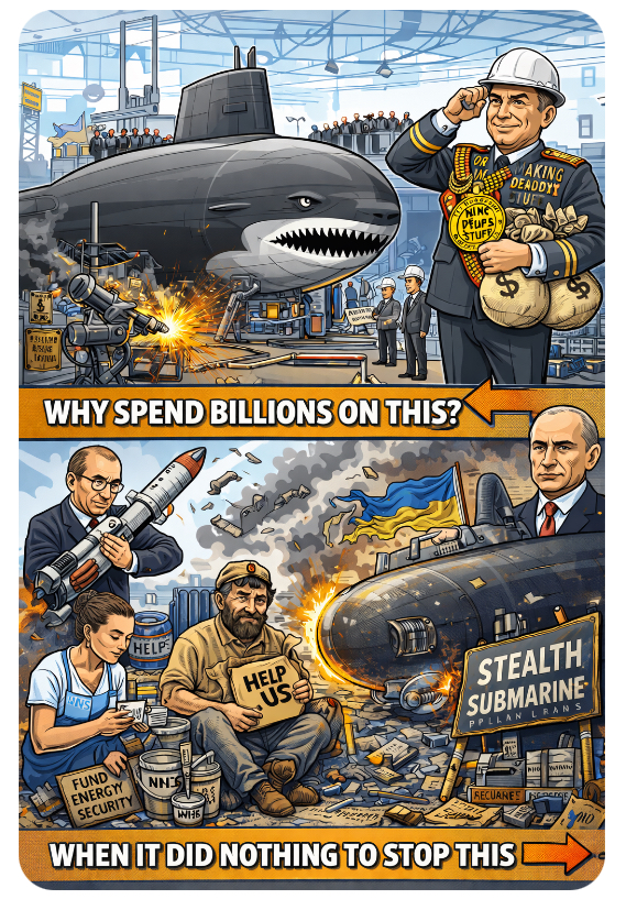 But no — we’re still playing Cold War cosplay, stuffing missiles into billion-pound submarines while pretending it’s “defence.”