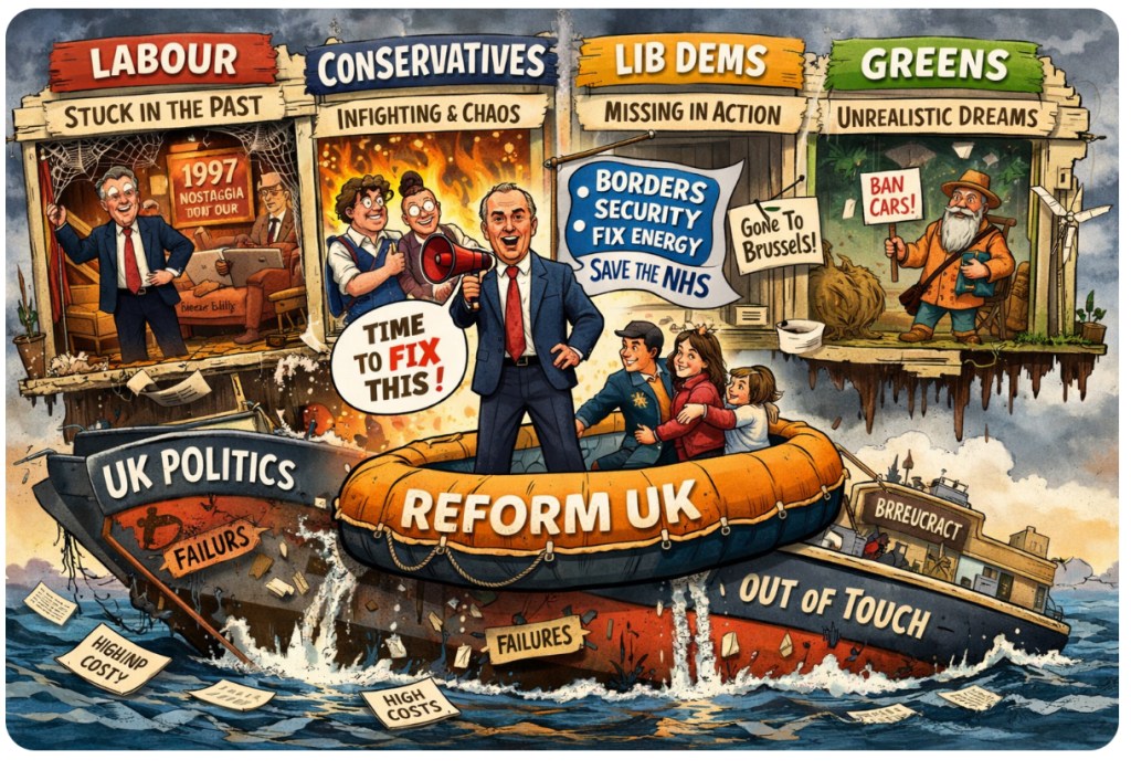 Let’s not kid ourselves — this isn’t a political fairytale. It’s a mass evacuation from the derelict house of mainstream politics, and Reform just happens to be the only one handing out torches instead of TED Talks.
