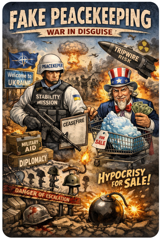What’s being proposed as “peace enforcement” in Ukraine is anything but neutral. Foreign troops on Ukrainian soil under the banner of “stability” may sound comforting to politicians and pundits, but history—and reality—tell a darker story. This kind of deployment doesn’t end war. It buries it under layers of PR spin and military hardware, ready to explode the moment someone flinches.