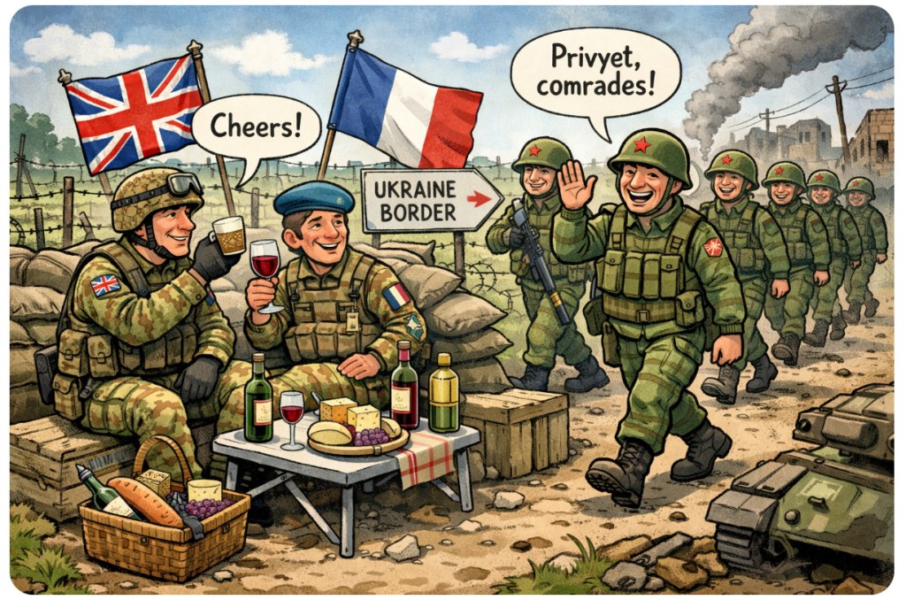If you can’t secure a 21-mile stretch of water between Dover and Calais, what on Earth makes anyone think you’re ready to lock down a frontline in Donetsk? 🗺️🚧