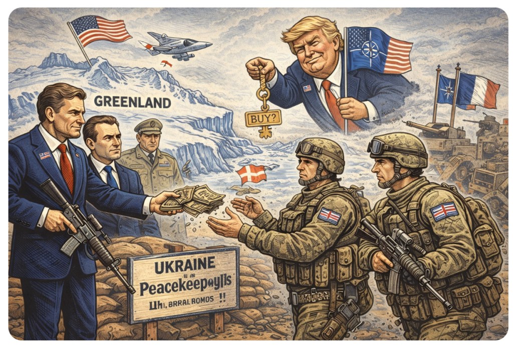 Do we want British soldiers posted in a frozen battlefield under the guise of peace, while Washington chases property deals in the Arctic? Are we protecting democracy — or just playing imperial dress-up while pretending it’s noble?