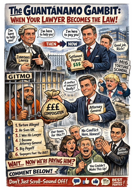 🧾💸🎭Richard Hermer—bestie of Labour leader Keir “I-don’t-know-him-like-that” Starmer and now the UK’s top legal watchdog—used to fight against the government in court on behalf of a Guantánamo detainee. Fast forward to now: he’s the Attorney General for the government… and that same detainee just got a taxpayer-funded payout. Plot twist? Nope. Just British politics on a full spin cycle.