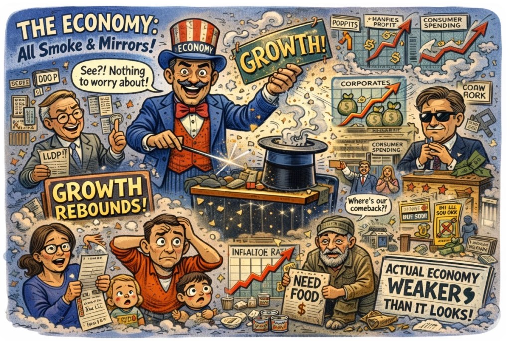 The government announced “growth.” Analysts cheered. Economists nodded wisely on cable news. And yet, across the country, people squinted at their bills wondering if they missed the part where anything actually got better.