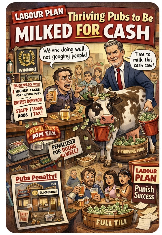 🍻💸Raise your glasses—then maybe lock the till—because Labour’s latest genius idea for Britain’s struggling hospitality sector is… to punish pubs that aren’t failing. Yes, in a bold twist on “if it ain’t broke, tax it harder,” plans are afoot to turn thriving pubs into fiscal punching bags through a rejig of business rates.