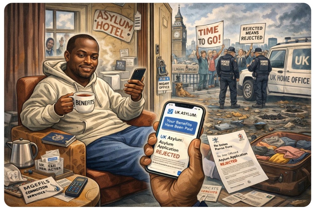 This isn’t really about one individual. It’s about a system that says no with one hand and hands over a room key with the other. Rejected last summer, still housed, still supported, still costing money—because Britain’s immigration enforcement operates on the “we’ll get round to it” model. Eventually. Maybe.