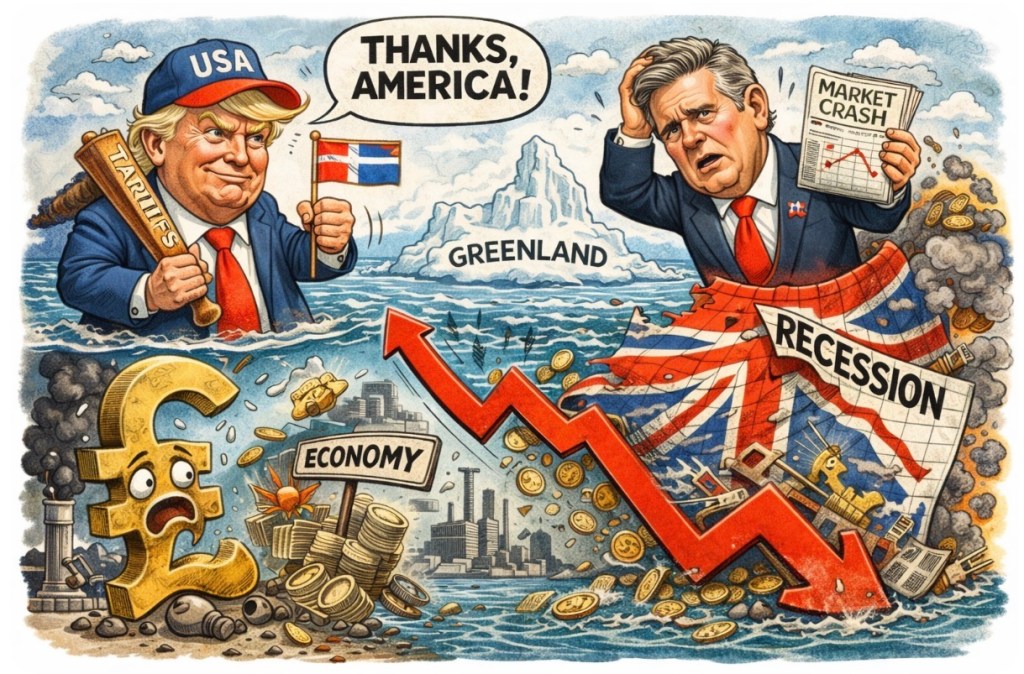 Just when Britain thought it had enough economic bruises to nurse, along comes Donald Trump with a trade war inspired not by steel, security, or strategy—but by a sudden, unexplained crush on Greenland. Yes, Greenland. 🗺️💭