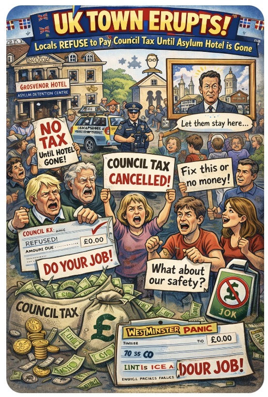 In a quiet British town turned battleground, locals have had enoughโand theyโre putting their money nowhere near their mouths. Residents are flat-out refusing to pay council tax until the government shuts down a local hotel-turned-asylum-centre. Forget petitions. Forget letters to MPs. This is financial civil disobedience with a kettle on. ๐ซ