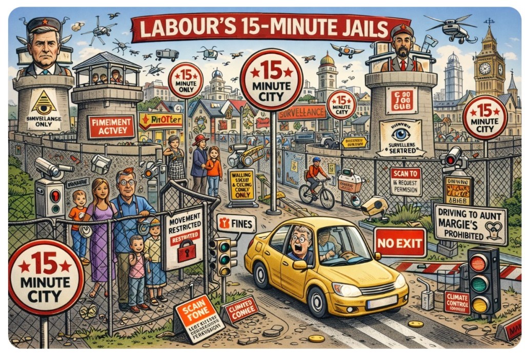 Labourβs plan to roll out 15-minute cities across Britain reads like a Pinterest board curated by a Stalinist town planner. Theyβre selling it as a wholesome return to local livingβshops, schools, and your therapist all within a 900-second radius. But lurking beneath the artisanal sourdough and bike lanes? Surveillance, restrictions, and a bureaucratic hall monitor with a grudge.