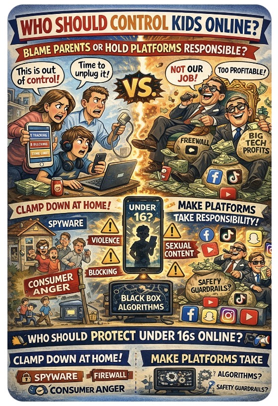 Why are we wagging the finger at parents when platforms are the ones hosting the party with no bouncer? Is clamping down on home Wi-Fi the solution, or just a smokescreen for regulatory cowardice?