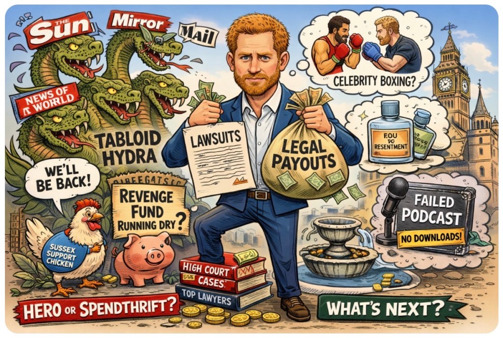 Prince Harry, formerly known as HRH, Duke of Sussex, now appears to be CEO of Lawsuits & Vindication Ltd.. You see, while some people start podcasts or Pilates to cope with childhood trauma, Harry’s opted for a slightly pricier pastime: suin’ the stuffing out of Fleet Street.
