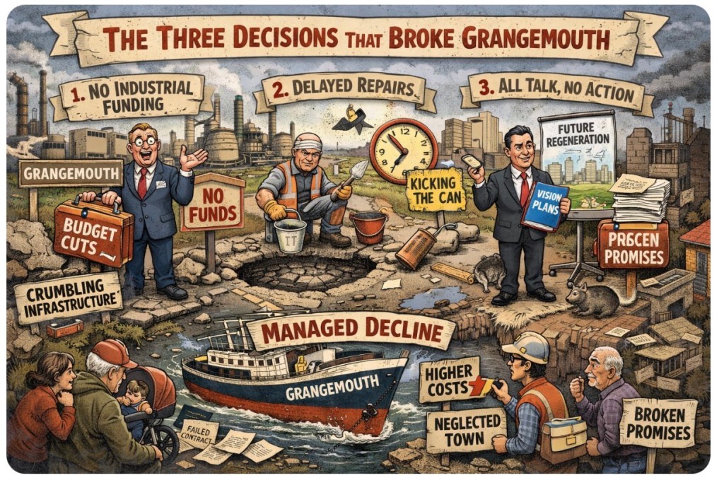 Why was Grangemouth asked to carry Scotlandβs industrial burden and balance Falkirkβs books with its own decay? Who made these calls β and who kept letting them?