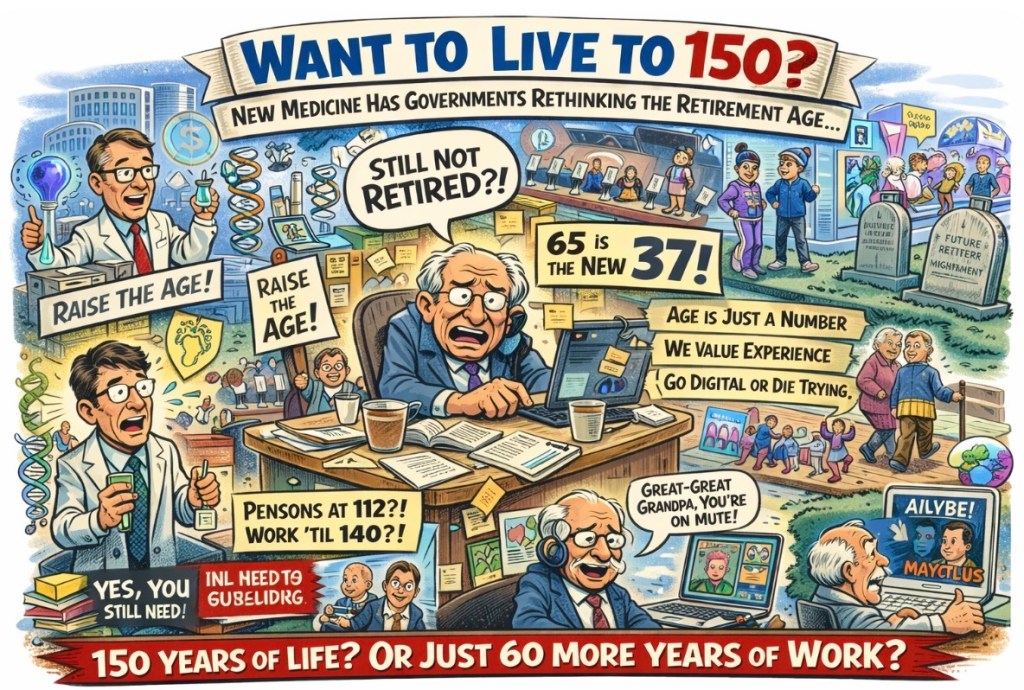🧓➡️🧟♂️As biotech billionaires, lab-coated longevity cultists, and government actuaries all collectively squeal with excitement over humans possibly living to 150, one quiet group isn’t popping champagne: literally everyone else. Because as medicine stretches lifespans like a yoga instructor on espresso, guess who else is stretching? Retirement ages. Pension plans. Your entire concept of a finish line.