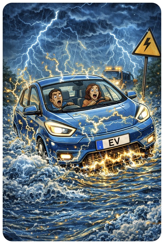 “But aren’t EVs sealed and safe?” Sure. In the same way the Titanic was “unsinkable.” A few inches of water might not be a problem, but once you go deep enough to impress Poseidon, you’re basically short-circuiting a $20,000 component with the emotional fragility of a 2007 iPhone.