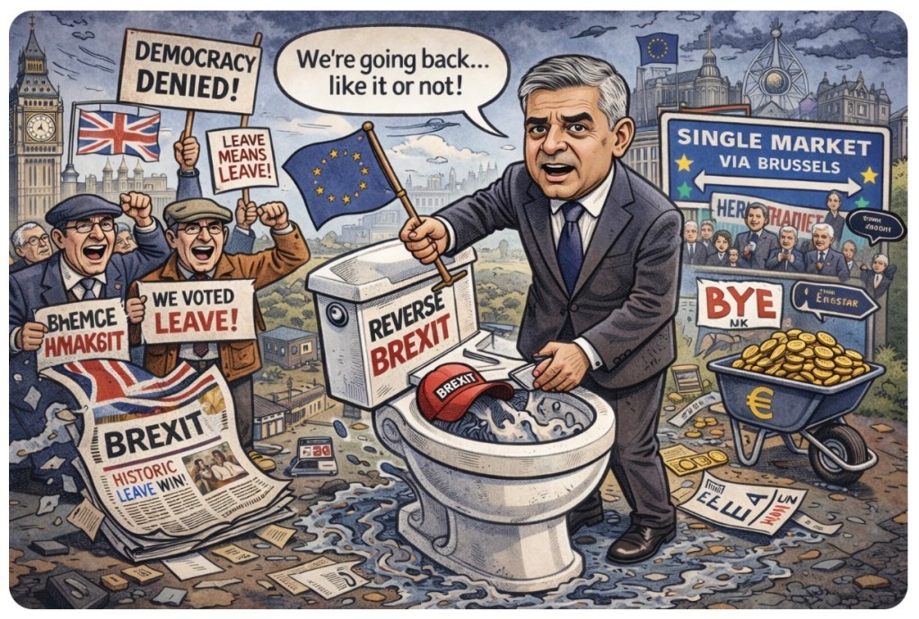 Letβs take a moment to appreciate the gall here. Millions voted Leave. The country endured years of chaos, economic recalibration, political musical chairs β and now Sadiq Khan, from his high-rise of capital city smugness, wants to quietly undo the whole thing.