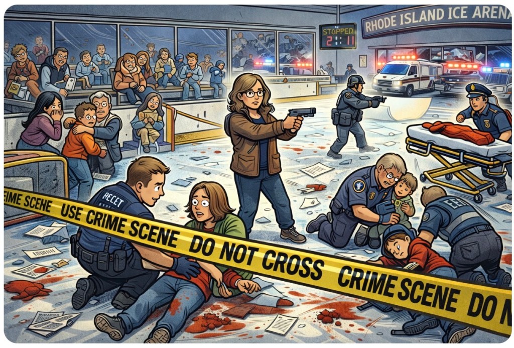 Witnesses described panic as shots rang out, with families diving for cover and players ushered off the ice. What should have been a night of sport became another entry in America’s growing list of public shootings.