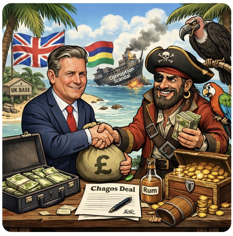 What was pitched as a tidy bit of post-colonial housekeeping has suddenly developed the unmistakable aroma of political panic. The Chagos deal—already controversial—now finds itself tangled in allegations, arrests, and awkward questions no one wants to answer on live television.