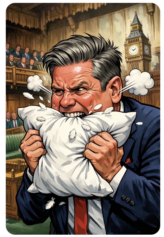 And somewhere in Downing Street, according to Widdecombe’s pillow-biting prose, Keir Starmer is supposedly gnashing molars in textile frustration. 🛏️😬