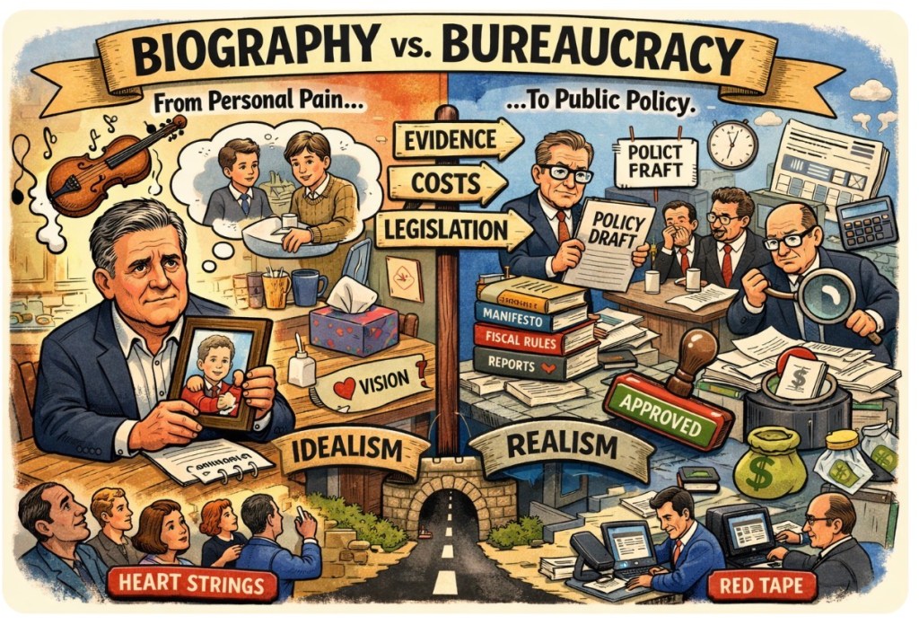 When a political leader reaches into their past and pulls out a deeply personal story, it feels like we’re witnessing the origin story of a reform superhero. Trauma becomes legislation. Memory becomes mandate. Grief becomes green paper.