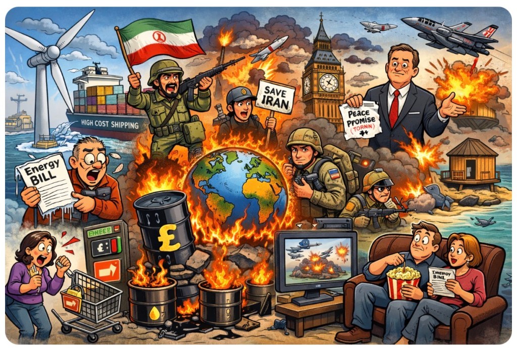 With tensions flaring in the Middle East and the UK having dialed down North Sea exploration, the question isn’t just about barrels and pipelines — it’s about how tightly we’ve chained ourselves to global turmoil. When geopolitics sneezes, Britain catches a £300-a-month cold. 🤧💷