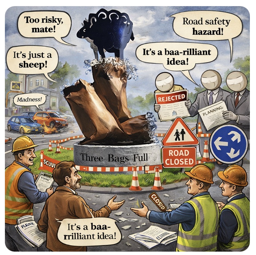 Is blocking the Baa Baa Black Sheep sculpture sensible road safety… or just another example of planning bureaucracy sucking the fun out of local communities?