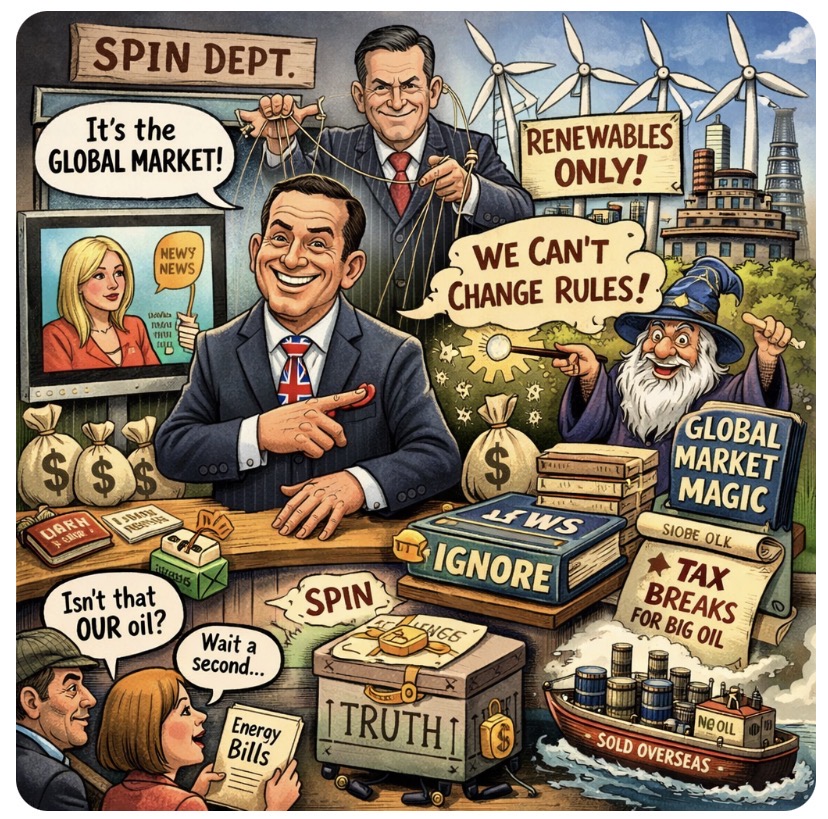 🌍⛽This morning’s performance on Good Morning Britain delivered a familiar script: ministers insisting that drilling more oil in the UK wouldn’t lower prices because oil is sold on the global market. Case closed, apparently. Except… that argument conveniently leaves out one rather awkward detail — governments write the laws that determine how markets work in the first place. Funny how that bit never makes it into the interview.