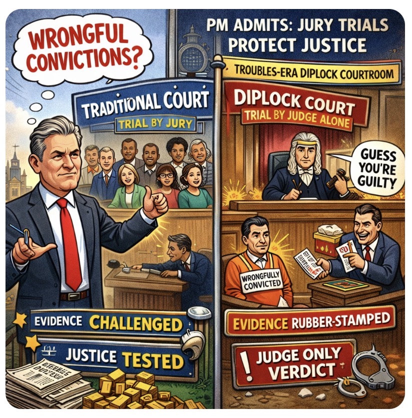 ⚖️🧑⚖️Politics has a funny habit of digging up yesterday’s legal opinions and dropping them right into today’s arguments. This time it’s an old position from Keir Starmer resurfacing: his acknowledgement that removing jury trials during the Northern Ireland Troubles led to wrongful convictions because judges alone couldn’t always properly test the evidence.