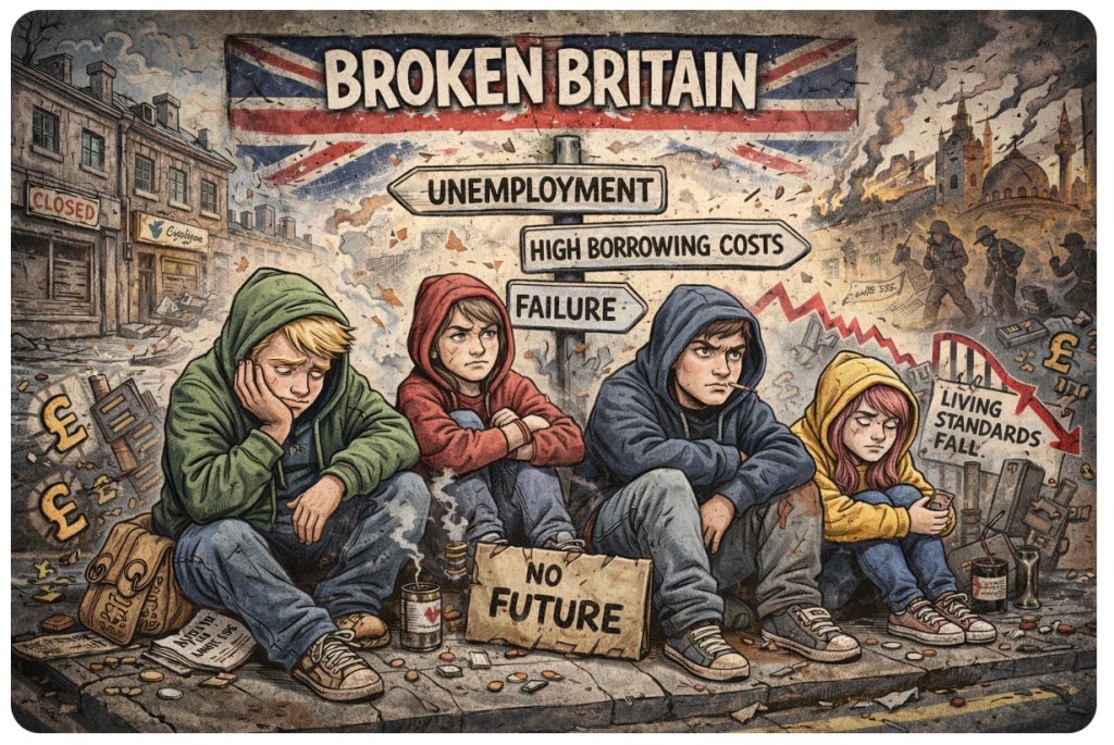 With youth unemployment climbing to 16.1%βthe highest in a decadeβand borrowing costs spiralling like a bad habit, Britain isnβt just weathering stormsβ¦ itβs leaking from the inside.