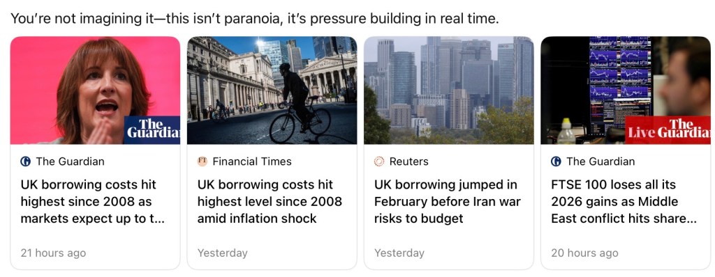 - 🌍 War (Iran conflict driving energy + inflation)