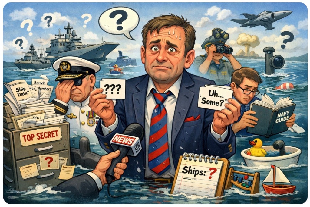 So there stands the UK Defence Secretary—representing one of the world’s most historically proud naval powers—and when asked how many frigates and ships are in service, the response lands somewhere between “I’ll get back to you” and “define ‘ship’.”