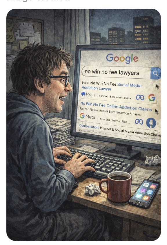 - “No win no fee social media addiction claim”