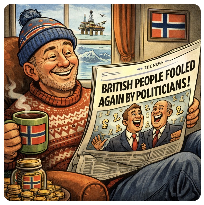 Over in Norway, they took a slightly different approach. Drill the oil. Sell the oil. Invest the profits. Repeat. Now they’ve got a sovereign wealth fund so vast it could probably buy the UK a new kettle—and still have change left for a hydro dam or two.