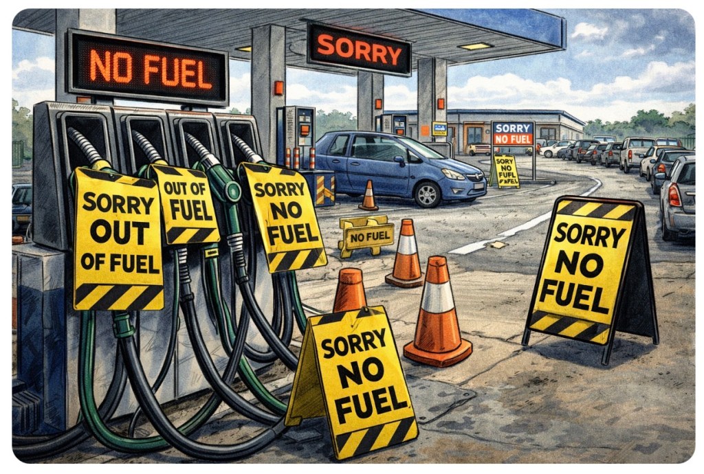 As petrol stations begin running dry in places and people scramble to top up “just in case,” the bigger issue isn’t just supply—it’s confidence.