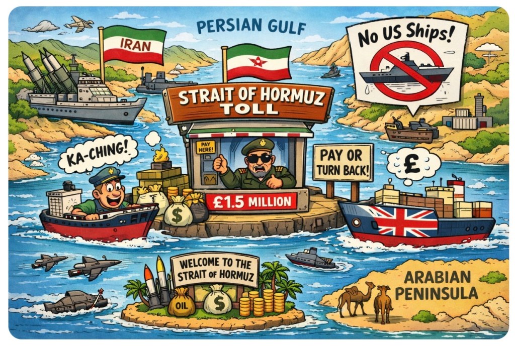 Imagine it: not a warzone, not a blockadeβjust a glorified barrier gate in the middle of global trade. βThatβll be Β£1.5 million, mate, or turn your tanker around.β π’π·