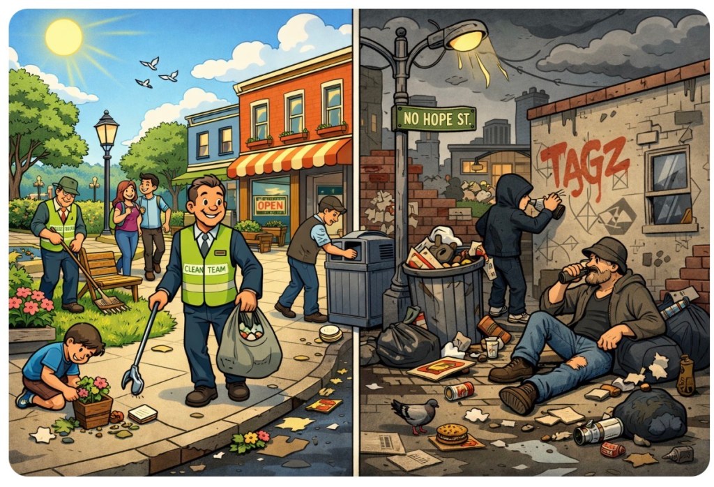 ☕🏙️A single piece of litter doesn’t just dirty a street—it whispers. It tells every passerby, “No one’s watching… no one cares.” And just like that, standards begin to unravel. Not dramatically. Not overnight. But steadily, like a slow leak in the social fabric.