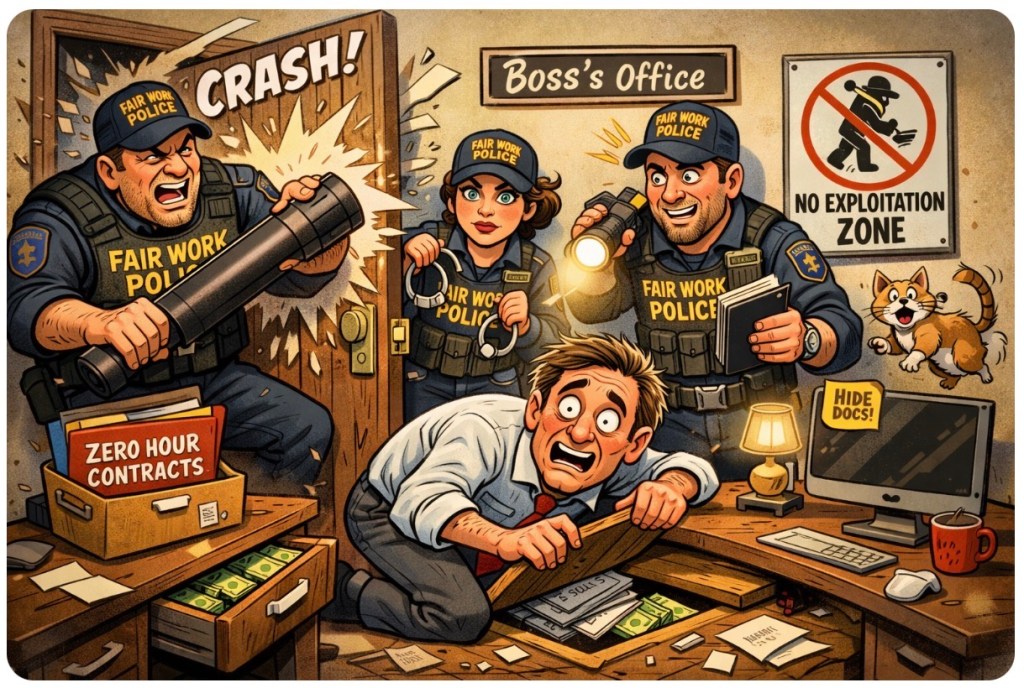Would you feel safer… or just slightly panicked hearing a knock from the “Fair Work Agency”?