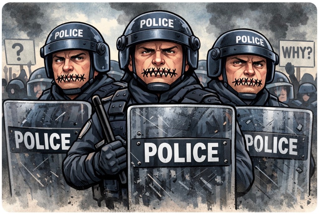 Meanwhile, tensions spill onto the streets. Protesters gather, not because they enjoy confrontation, but because uncertainty breeds fear. And what meets them? Lines of officers, not to explain, but to contain. Optics matter—and right now, the image isn’t reassurance, it’s distance.