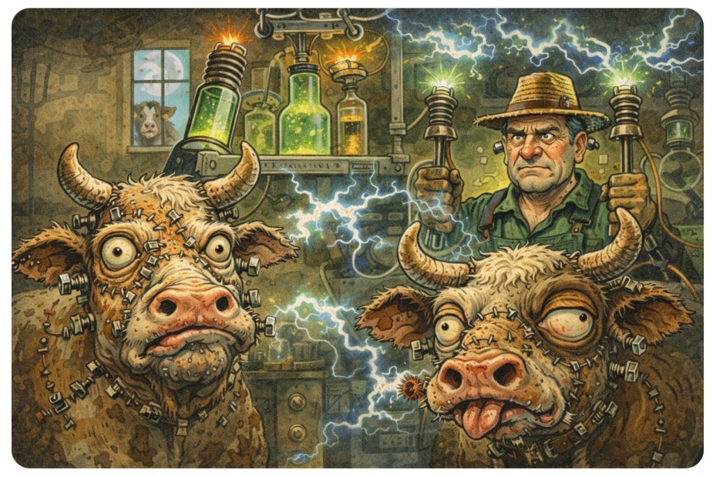 So naturally, the solution isn’t better boundaries—it’s… uglier cows. Less Disney, more “please keep your distance.” A face only a farmer could love. Problem solved? Questionable. Entertaining? Absolutely.